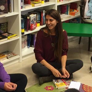 È sempre entusiasta di incontrare i suoi lettori in librerie, scuole, biblioteche, piazze e piazzette (se c’è anche la merenda, meglio).